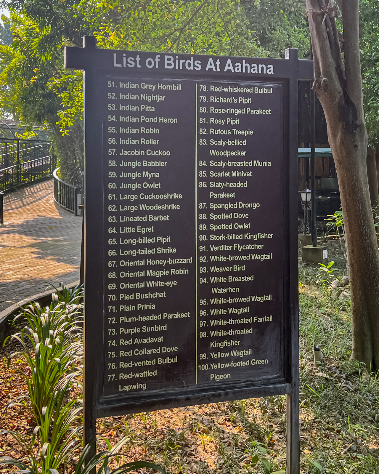 There is a wide variety of plants and trees in the 13.5-acre Aahana precincts. These range from Bamboo species like Elephant Bamboo, Tiger Bamboo, Pencil Bamboo, and Buddha Belly Bamboo to trees like Kadam and Melaleuca. In ancient times, they used Melaleuca’s bark as parchment. The flowers ranged from Canna to Madhu Malti to the Fire Cracker tree. Another interesting plant was the Maloo Bel; its leaves are used to make pattals and donas.