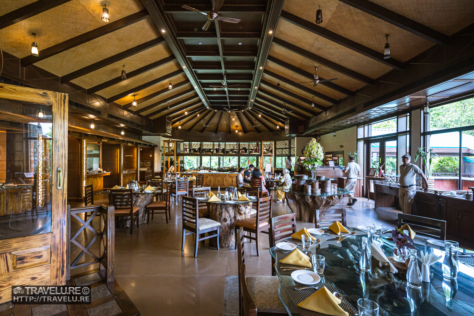 After settling down, as we headed out to the Dhikala restaurant, we spotted some elegant thatched roof gazebos along the path. Even in the peak summer afternoon, this outdoor seating was at least 5 degrees cooler, thanks to the gentle breeze and shade.