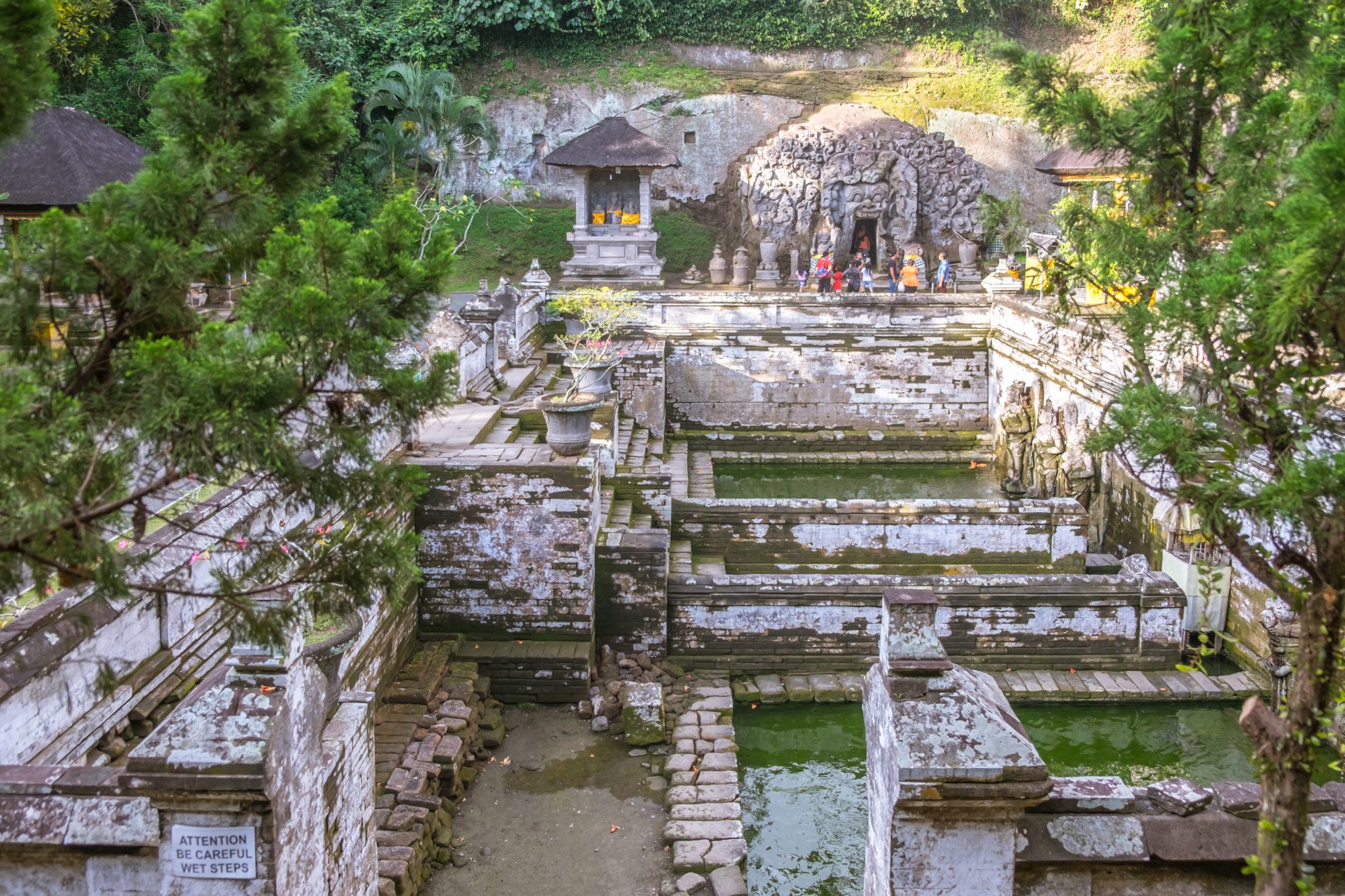 Foreground – Goa Gajah Sarovar. Background – Goa Gajah Cave.