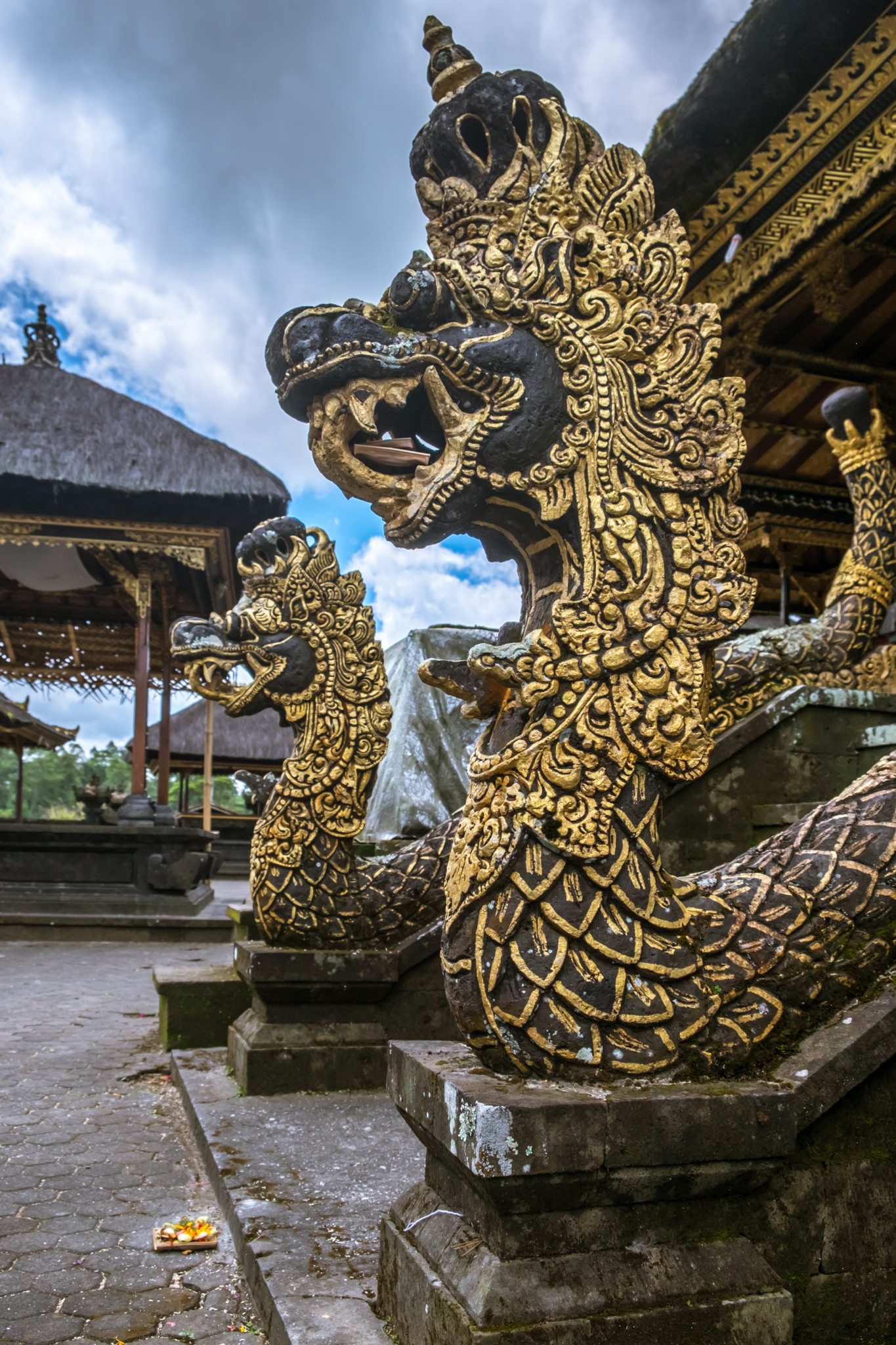 Intricately carved sculptures of Vishnu Temple in Besakih Complex