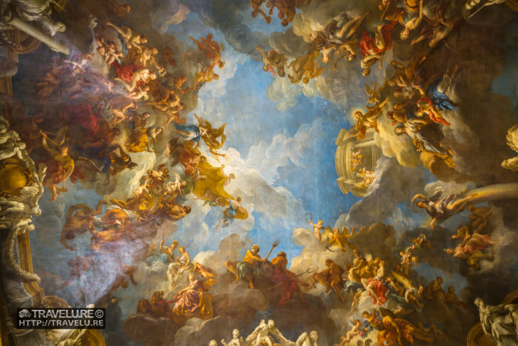 As I stepped out of another extravagant palace room, I found myself in a huge hall. My audio guide told me it was the Hall of Mirrors. Its seventeen mirror-clad arches reflect the seventeen windows that overlook the gardens. I later learnt it is 73mts long. Its ceiling was over 10mts.