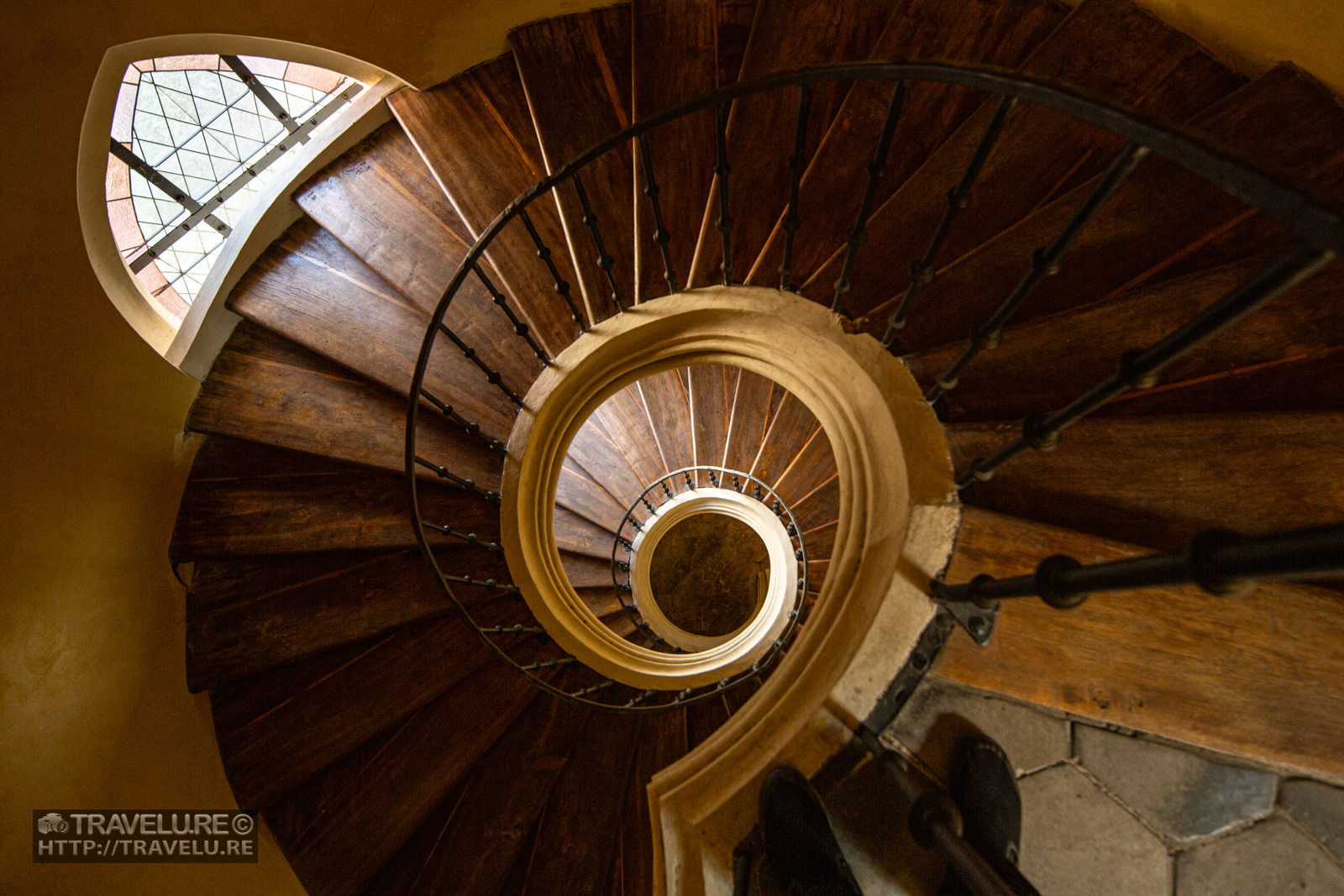 Gothic Cathedral of Our Lady, together with St. Barbara’s Church in Kutna Hora (the Czech Republic), made it to the UNESCO World Heritage List in 1995. Its construction began in the late 13th-century and finished in the early 14th-century. While rebuilt in the late 17th – early 18th century in the Baroque Gothic style, they took care to preserve its original Gothic atmosphere. This spiral staircase of the Cathedral of Our Lady leads to its bell tower. Though built ~300 years ago, its wooden steps and banister are polished and maintained as new.