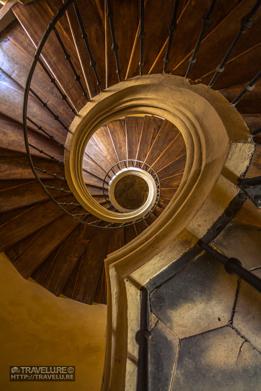 As I looked up, the spiral staircase offered a likeness of the Fibonacci spiral or the golden spiral. You may recall the Fibonacci spiral or the golden ratio/spiral gives photography the rule of thirds but is better than that rule. Composing it in the shot was easy.