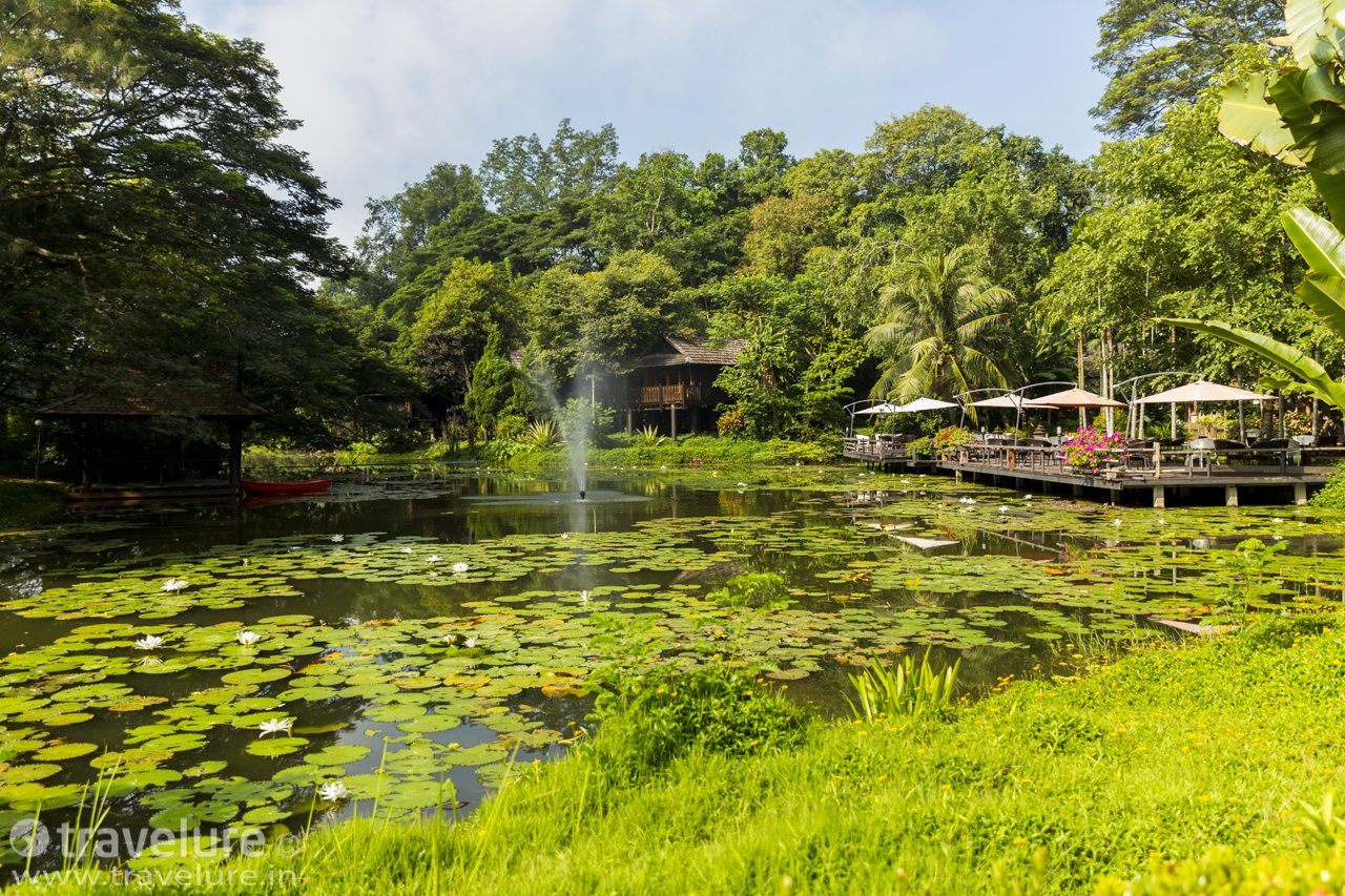 We spent the night in Lampang River Lodge, a property ensconced in the lap of nature. This scenic property has scores of hundred-year-old trees, a lake filled with lotus, a meandering swimming pool and cottages built on aged wooden decks.
