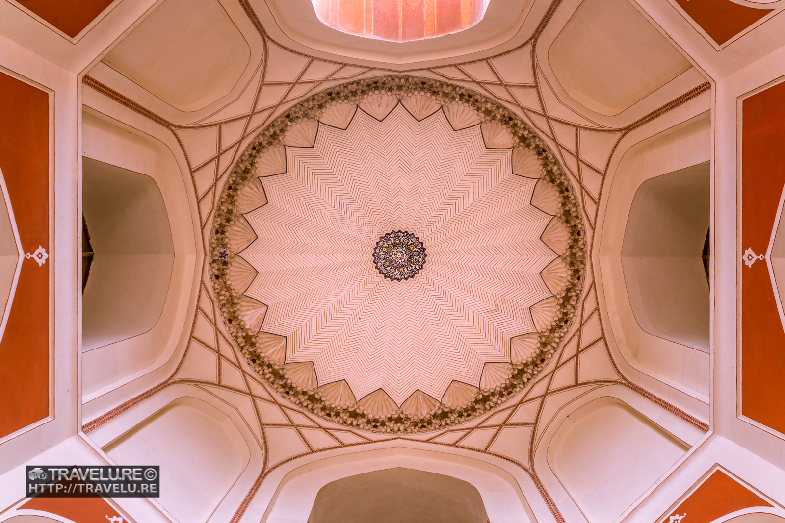 While the structure is large, it is not flamboyant. The main dome is 42.5mt high. The ceiling has a chevron motif running along the radials of the circular design. It is also called a dormitory of the Mughals. As the complex has about 150 tombs of other Mughal family members besides Humayun. As a structure, the main tomb is symmetric and aesthetic.
