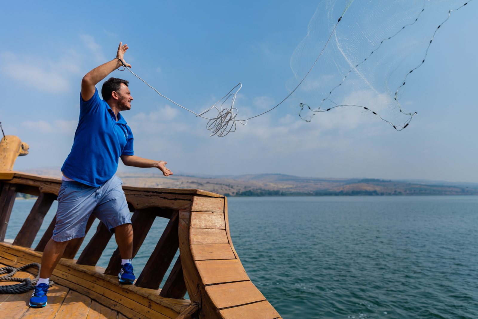 During our cruise on the Sea of Galilee, our boatman cast his fishing net to catch some St. Peter’s fish. If he had caught even one of them, we would have been considered a ‘blessed group’, but it was not to be.