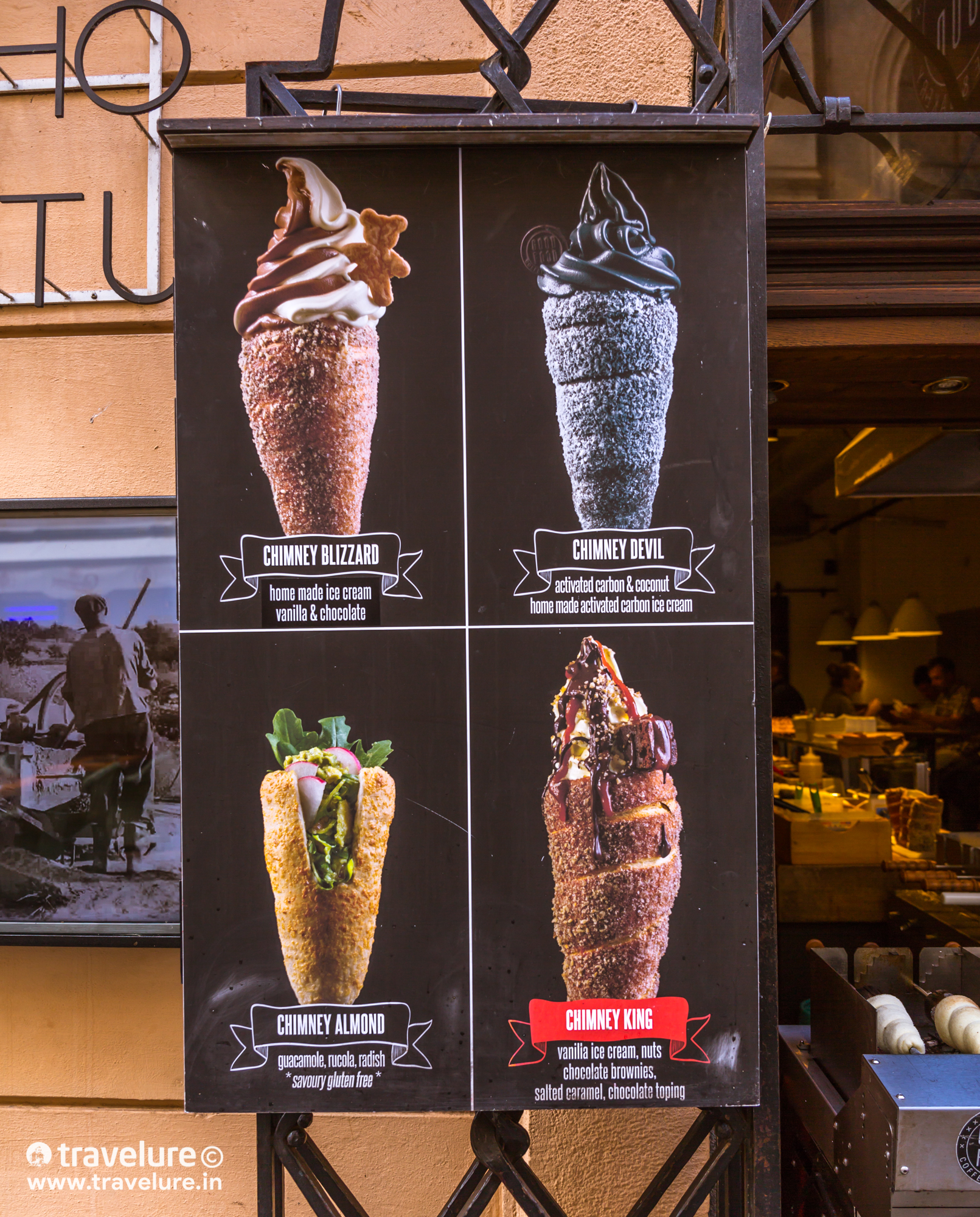 👆 Having an ice cream in Prague is an interesting experience. Notice the names of these ice creams – Chimney Blizzard, Chimney Devil, Chimney Almond, Chimney King. While the ingredients may change, ‘Chimney’ is a common refrain. Why ‘Chimney’? Well, the ice cream is served in cones that are like chimneys – open from both ends. Watch it as you enjoy your ice cream!