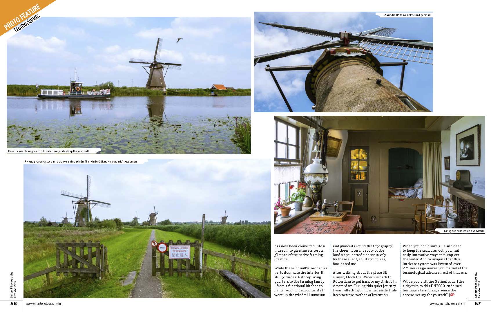 Smart Photography, a leading photography magazine from India, carried my photo-feature on a day trip to Kinderdijk in their February 2017 issue.