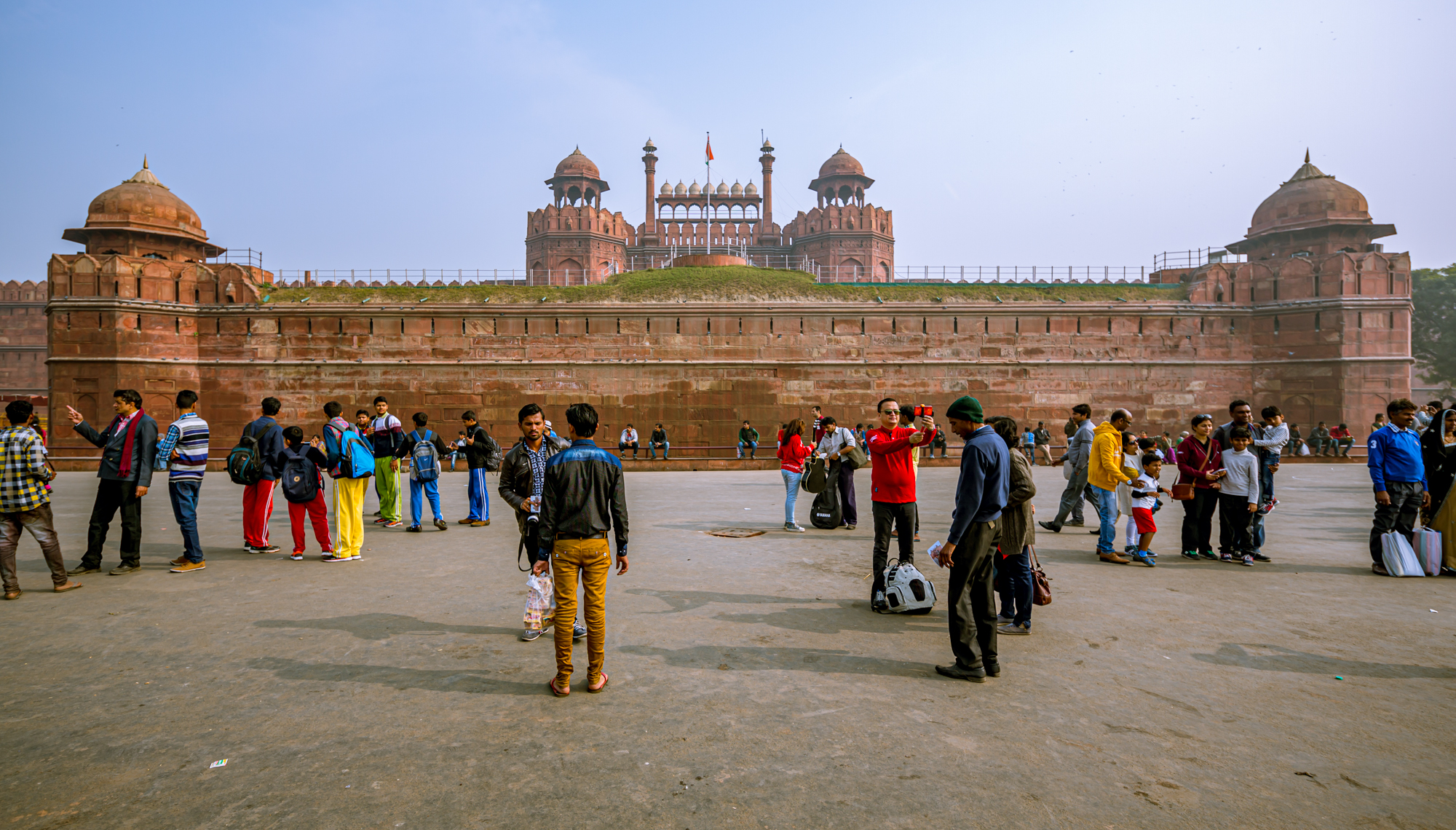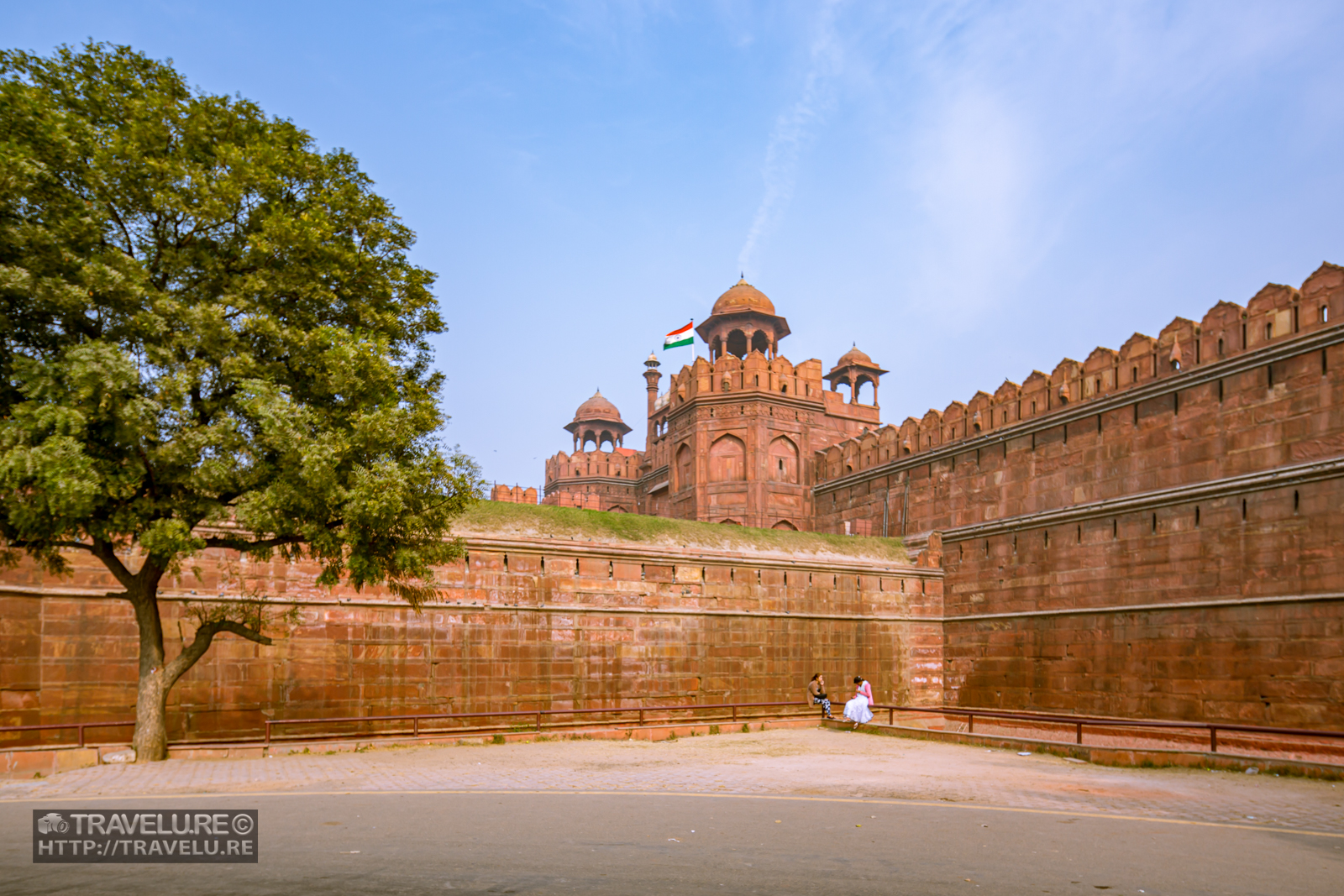 Red sandstone that dominates the complex gives Lal Qila its name. Surrounded by a now-dry moat, its high walls provided slots for cannons to fire at the enemy, making the Fort impregnable. The city-facing side is 33 metres high, while the riverside bulwark is a comparative dwarf at 18 metres. For added defence, an imposing dual-rampart façade hides its massive arched entrance called Lahore Gate.