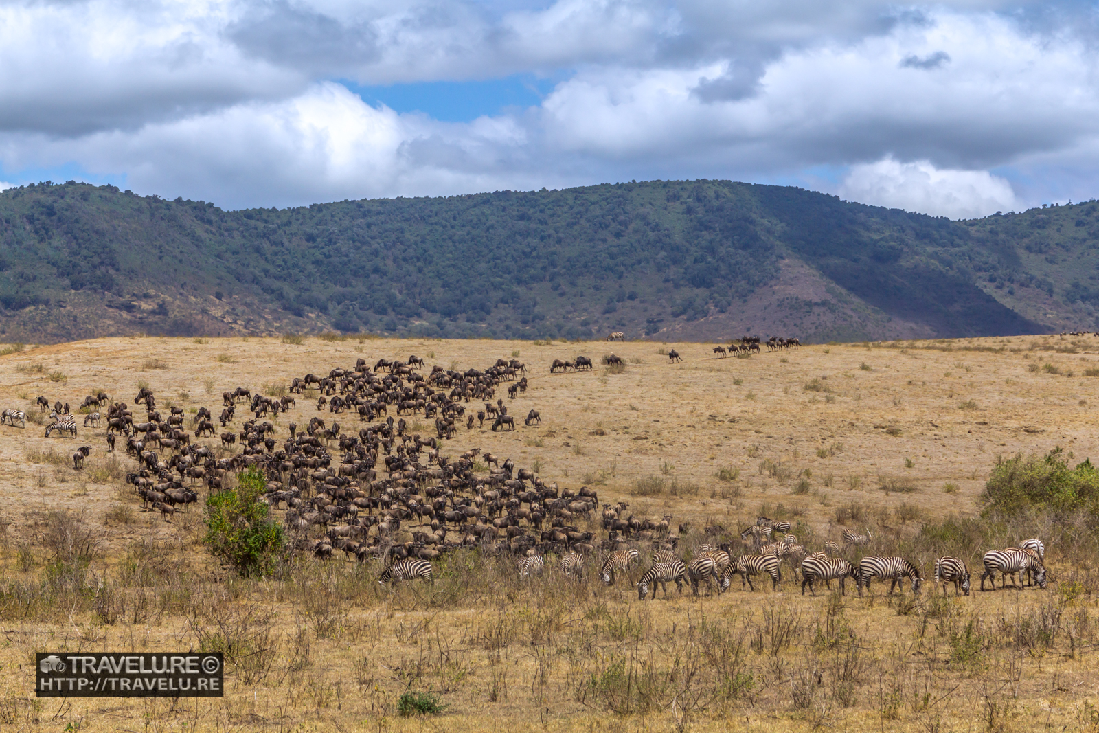 A little further, I spotted a huge meandering bunch of wildebeest and zebras. It was migration time. Sam said they hang together. Because zebras are good at finding direction, and wildebeest suck at it. A perfect symbiotic relationship in nature.