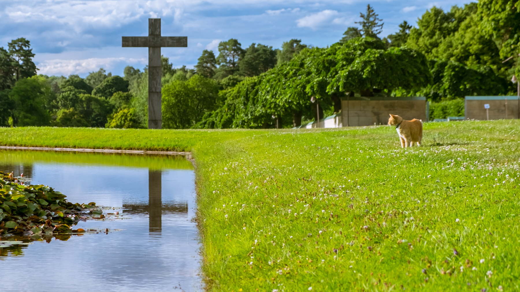 Furthermore, its 108-hectare landscape is surreal. As you enter, you find the crematorium to the left, a huge cross in front, and a meditation hill to the right. Just next to the cross is a large pond that adds to the sobriety and serenity of the cemetery.
