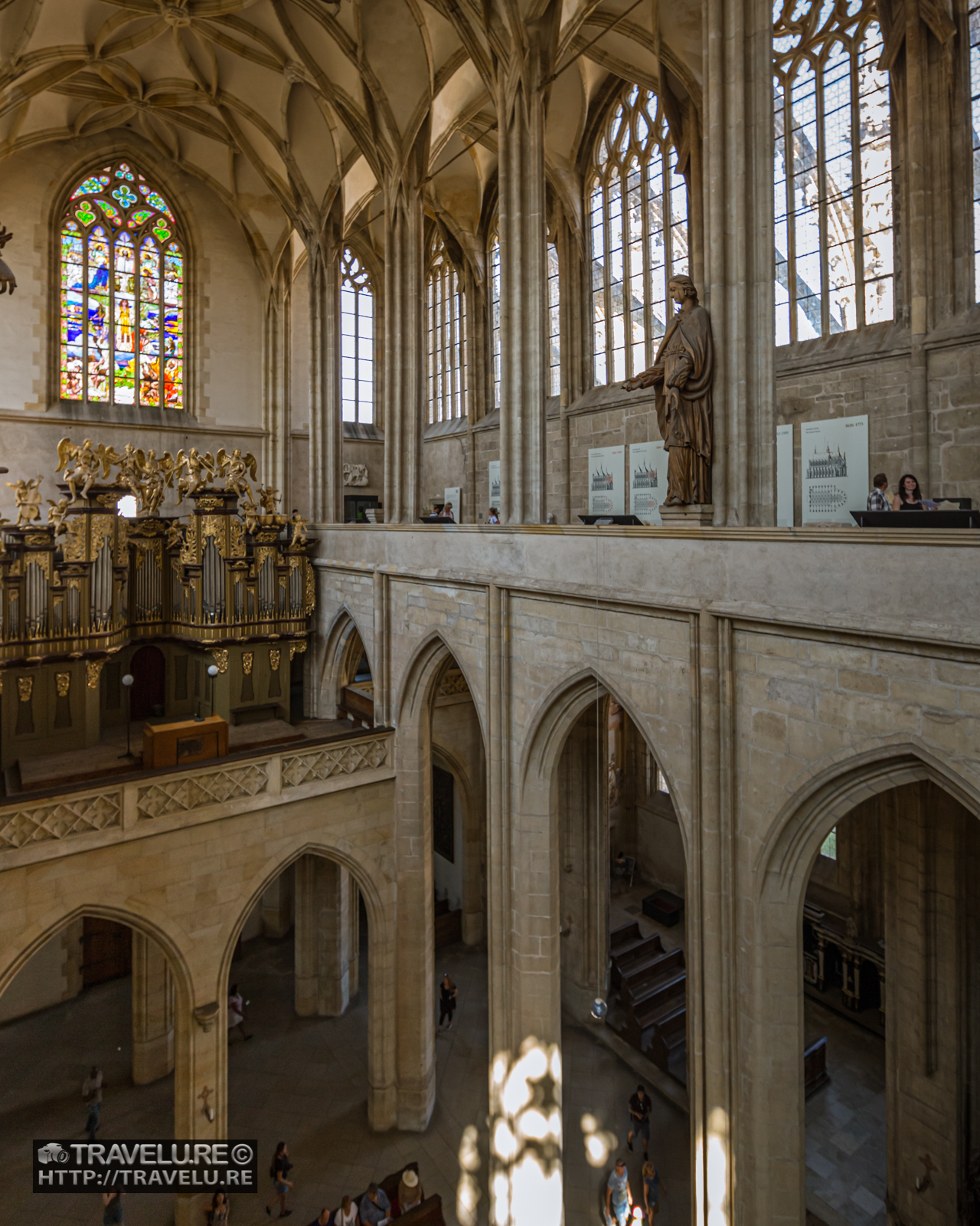 An assortment of reasons interrupted its construction. Like the 15th century Hussite wars, dwindling profits from the silver mines in the 16th century, lack of funds, etc. It was a blessing in disguise, as many notable architects contributed to the design of the church over the centuries. These included Jan Parler (son of Petr Parler, architect of St Vitus Cathedral, Prague), and Josef Mocker, who restored many Czech castles, including Karlstejn.