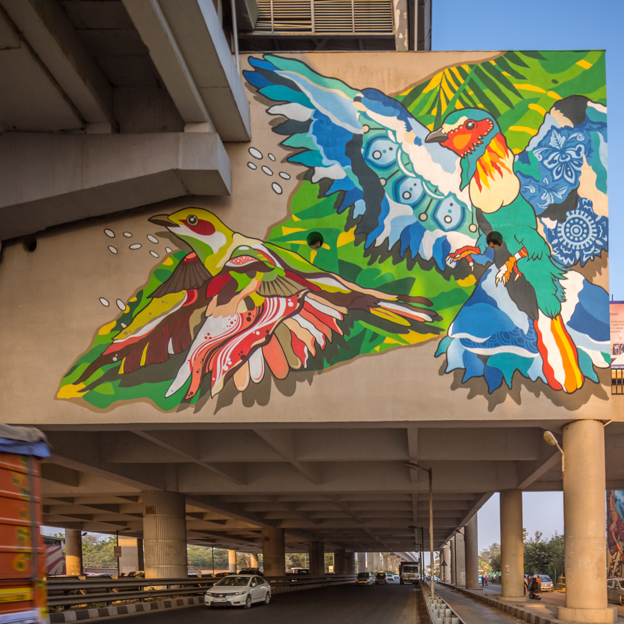 Let alone the residential blocks, even the metro stations were not left behind. The Delhi Metro, a lifeline for the city dwellers, is almost a walk-in art gallery. The transit walls of Govind Puri Metro Station in South Delhi or Arjan Garh Metro Station on the Mehrauli- Gurugram highway boast of beautiful murals of nature. Surrounded by greenery, the Arjan Garh Metro Station is the entry point to New Delhi. But as you move ahead, the scenario changes drastically. And this is what prompted Singaporean artists SK Lo and Soph O to transform this metro station. The colourful drawings of kingfisher and mynah birds, native to both India and Singapore, juxtapose nature on this urban landscape. According to the Delhi Metro Rail Corporation, the project is aimed at promoting art and culture in the country.