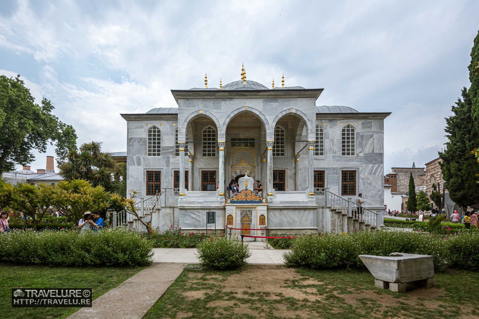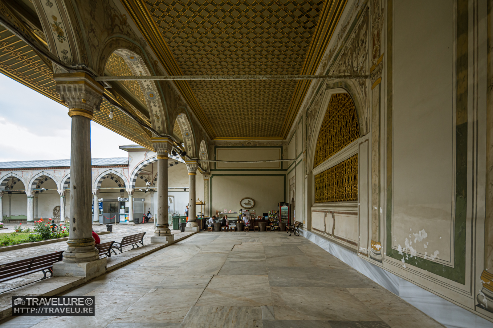 You walk alongside Hagia Sophia and cross the Ahmet III fountain to reach Imperial Gate, the entrance to the first courtyard. The public could walk into the first courtyard to give a petition to the government offices located here. This courtyard has some stone niches that used to display the severed heads of criminals. The left of the courtyard houses an 18th-century red-brick building – the erstwhile mint.