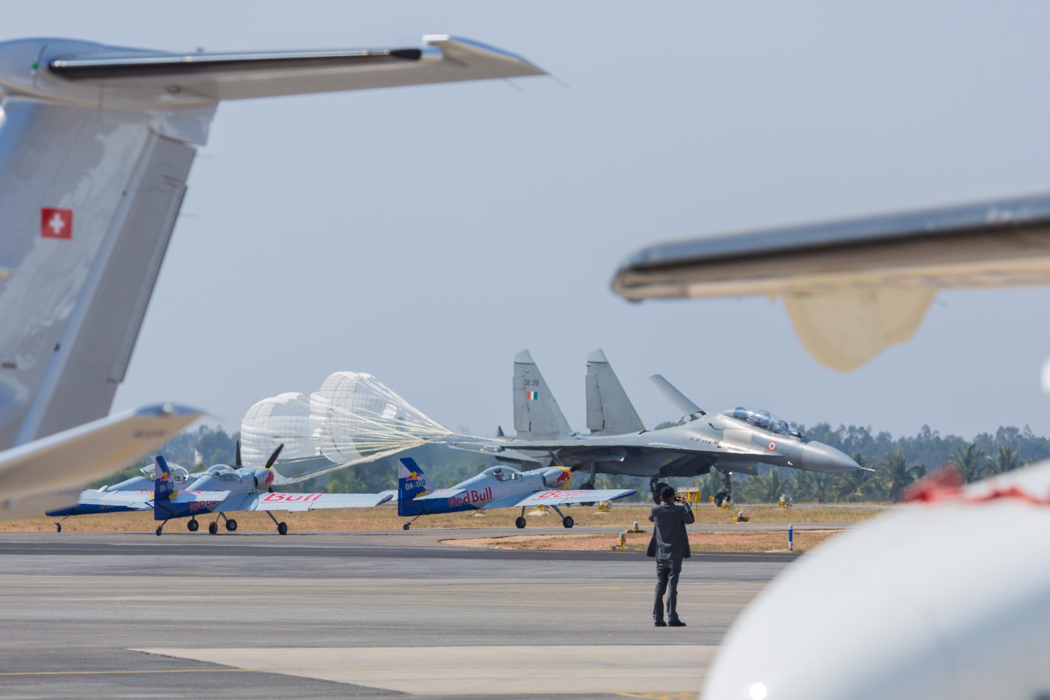 Despite supersonic speed, Sukhoi Su-30 MKI has a capability to land on shorter runways, thanks to a pair of parachutes opening when it lands.