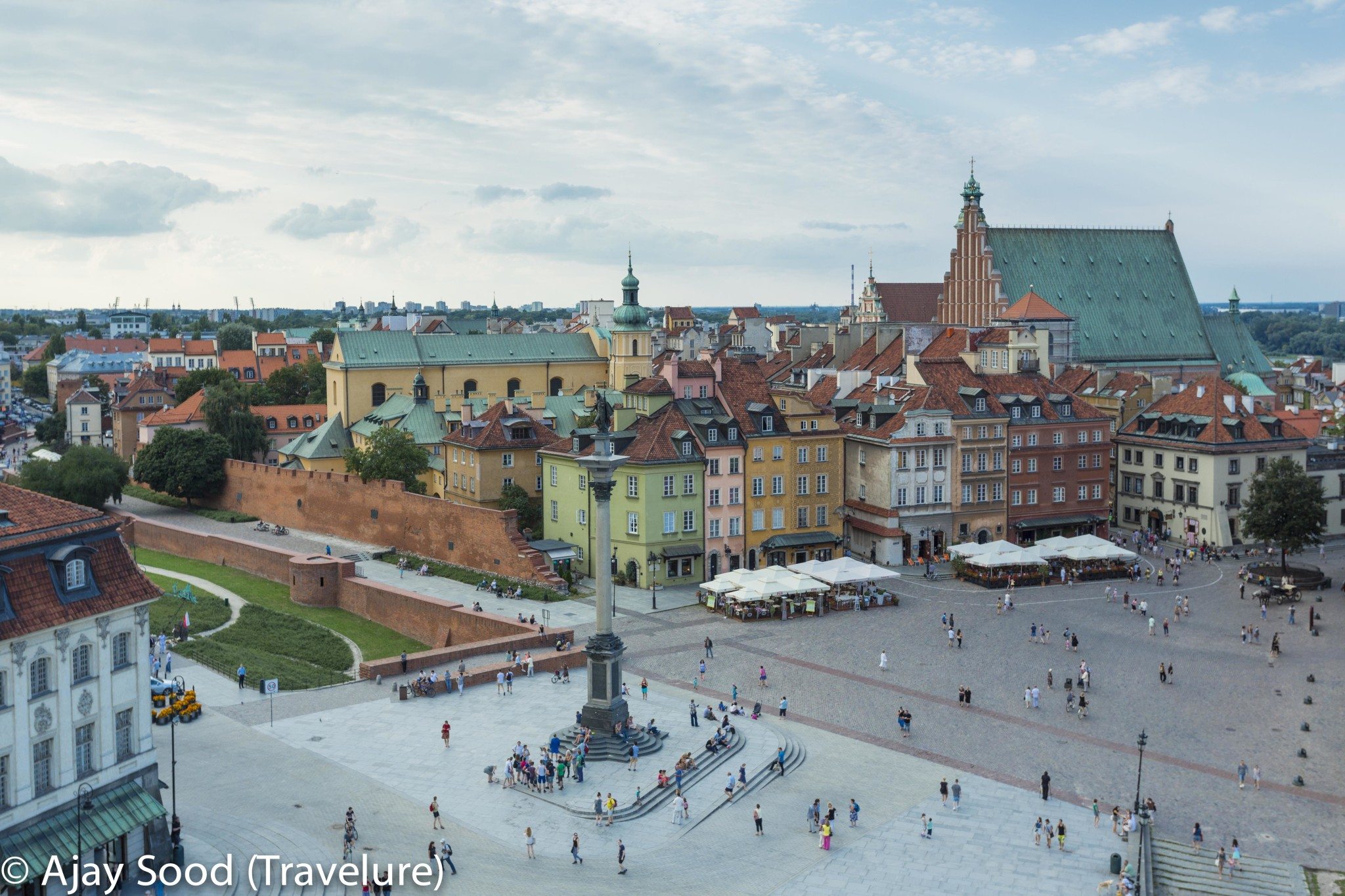 The Old Townhouses Jewish quarters, Warsaw University, many significant cathedrals, the Royal Palace, the President’s House, King Sigmund’s Column (Zygmunt III Waza in Polish) and one of the 2 custodians of the city – the Mermaid. The square that houses the Mermaid reminded me of the Trevi Fountain in Rome and the square in front of the Basilica of Santa Croce in Florence, as it is packed with roadside cafés offering beer and food, artists offering to paint for you, performers playing concert instruments, tourists gaping in awe, newly-weds excitedly engaged in their portfolio shoots and locals just chilling.