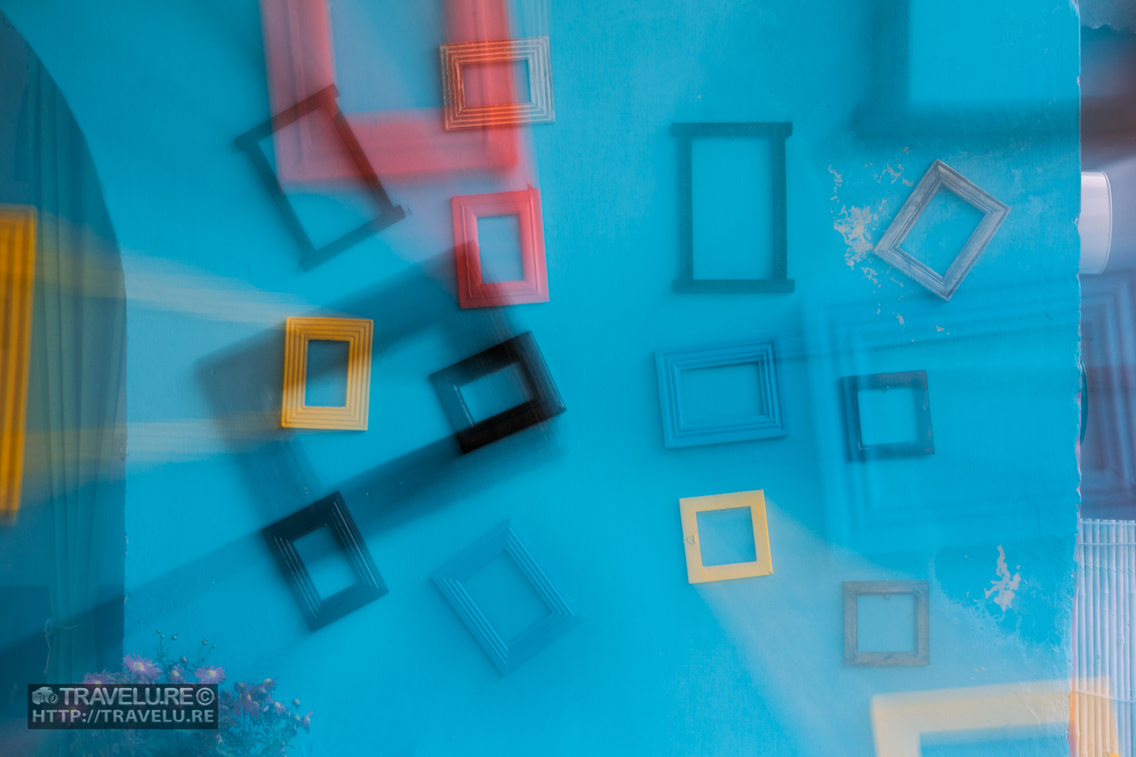 While these frames displayed on a rustic wall had a charm of their own, a photograph of them would not have been very inspiring to a viewer. To add a touch of the abstract, I captured this interesting decor element through zoom burst photography.
